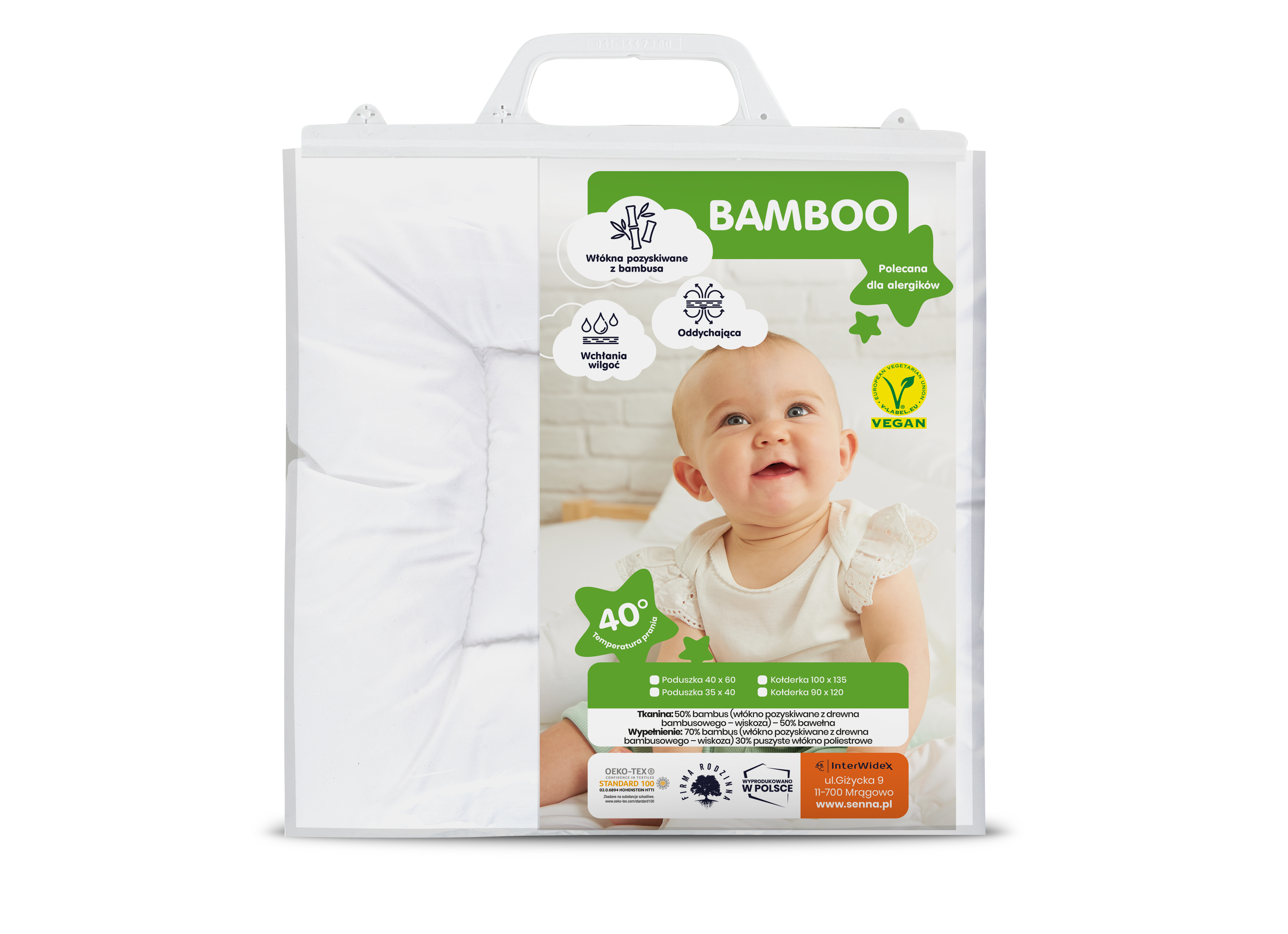 - bardzo dobra absorpcja wilgoci, zapewniająca suchy klimat snu – bambus wchłania wilgoć nawet do 3 razy skuteczniej niż bawełna